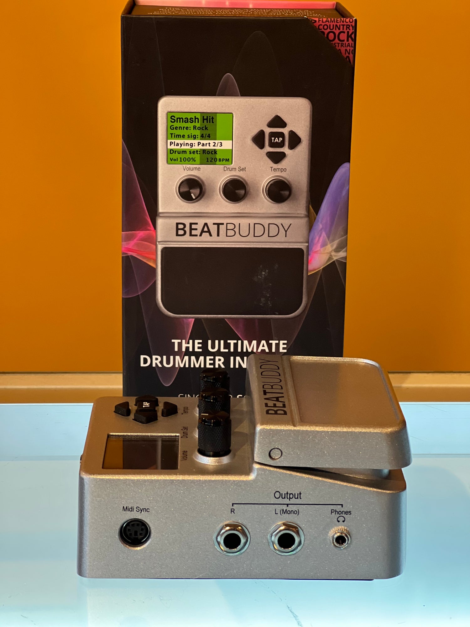 Drummer in a guitar pedal, always ready when you are. Control the beat live while you play. Jam with built-in award-winning beats or create your own.